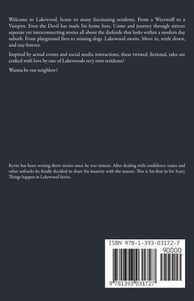 Welcome to Lakewood, home to many fascinating residents. From a Werewolf to a Vampire. Even the Devil has made his home here. Come and journey through sixteen seperate yet interconnecting stories all about the darkside that lurks within a modern day suburb. From playground fires to missing dogs. Lakewood awaits. Move in, settle down, and stay forever. Inspired by actual events and Social media interactions, Scary things in Lakewood is a twisted fictional exploration of an actual community, by one of it's residents. Wanna be our neighbor?