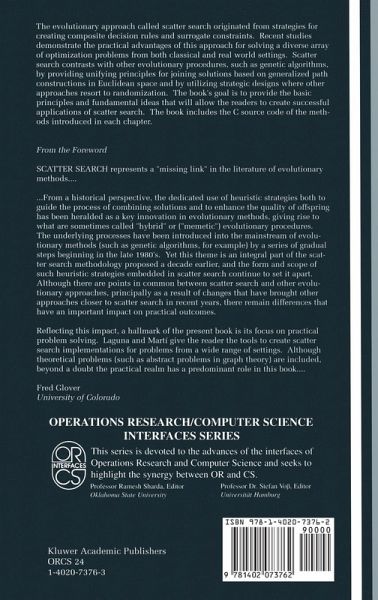 "The book Scatter Search by Manuel Laguna and Rafael Marti ... provides an excellent introduction to this advanced optimization methodology. ... Different from most other books in this field, this book comes along with a rich variety of illustrative examples for various optimization problems ... . This significantly helps to gain an in-depth understanding of the methodology and enables readers to develop state-of-the-art implementations on their own. ... With this book, the authors have created an excellent reference both for researchers and practitioners." (Stephan Scheuerer, OR-News, Issue 23, March, 2005)