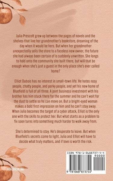 Julia Prescott grew up between the pages of novels and the shelves that line her grandmother's bookstore, dreaming of the day when it would be hers. But when her grandmother unexpectedly sells the store to a faceless new owner, the future she had always been certain of is suddenly unwritten. She longs to hold onto the community she built there, but will that be enough when she's just a guest in the only place she's ever called home? Elliot Dubois has no interest in small-town life. He hates nosy people, chatty people, and perky people, and yet his new home of Bluefield is full of all three. A joint business investment with his brother has him stuck there for the summer and he can't wait for the dust to settle so he can move on. But a bright-eyed woman makes a bold first impression on him and he can't stay away. When Julia becomes the target of a cyber attack, Elliot is the only one with the skills to protect her. But what starts as a problem to fix soon turns into something much harder to walk away from. She's determined to stay. He's desperate to leave. But when Bluefield's secrets come to light, Julia and Elliot will have to decide what truly matters, and if love is worth the risk. Scattered Acres is a grumpy x sunshine, small-town romantic suspense novel set in the fictional town of Bluefield, Canada. This story can be read as a standalone, but reads best after Inky Water and Staged River, the first two books in the Bluefield Beach series.