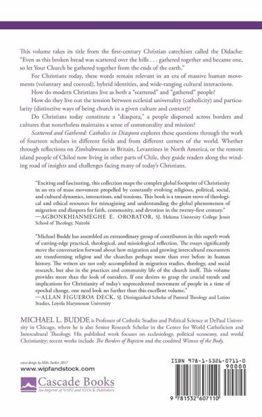 This volume takes its title from the first-century Christian catechism called the Didache: ""Even as this broken bread was scattered over the hills . . . gathered together and became one, so let Your Church be gathered together from the ends of the earth."" For Christians today, these words remain relevant in an era of massive human movements (voluntary and coerced), hybrid identities, and wide-ranging cultural interactions. How do modern Christians live as both a ""scattered"" and ""gathered"" people? How do they live out the tension between ecclesial universality (catholicity) and particularity (distinctive ways of being church in a given culture and context)? Do Christians today constitute a ""diaspora,"" a people dispersed across borders and cultures that nonetheless maintains a sense of commonality and mission? Scattered and Gathered: Catholics in Diaspora explores these questions through the work of fourteen scholars in different fields and from different corners of the world. Whether through reflections on Zimbabweans in Britain, Levantines in North America, or the remote island people of Chiloe now living in other parts of Chile, they guide readers along the winding road of insights and challenges facing many of today's Christians.