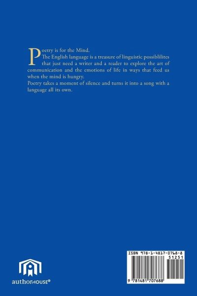 Poetry is for the Mind. The English language is a treasure of linguistic possiblilites that just need a writer and a reader to explore the art of communication and the emotions of life in ways that feed us when the mind is hungry. Poetry takes a moment of silence and turns it into a song with a language all its own.