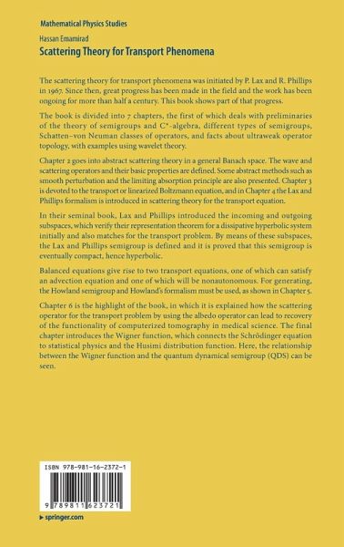 The scattering theory for transport phenomena was initiated by P. Lax and R. Phillips in 1967. Since then, great progress has been made in the field and the work has been ongoing for more than half a century. This book shows part of that progress.