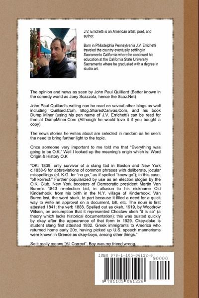 he opinion and news as seen by John Paul Quilliard (Better known in the comedy world as Joey Scazzola, hence the Scaz.Net) John Paul Quillard's writing can be read on seveal other blogs as well including Quilliard.Com, Blog.SharedCanvas.Com, and his book Dump Miner (using his pen name of J.V. Errichetti) can be read for free at DumpMiner.Com (Although he would love it if you bought a copy) The news stories he writes about are selected in random as he see's the need to bring further light to the topic. Once someone very important to me told me that "Everything was going to be O.K." Well I looked up the meaning's origin which is: Word Origin & History O.K "OK: 1839, only survivor of a slang fad in Boston and New York c.1838-9 for abbreviations of common phrases with deliberate, jocular misspellings (cf. K.G. for "no go," as if spelled "know go"); in this case, "oll korrect." So it really means "All Correct". Boy was my friend wrong.