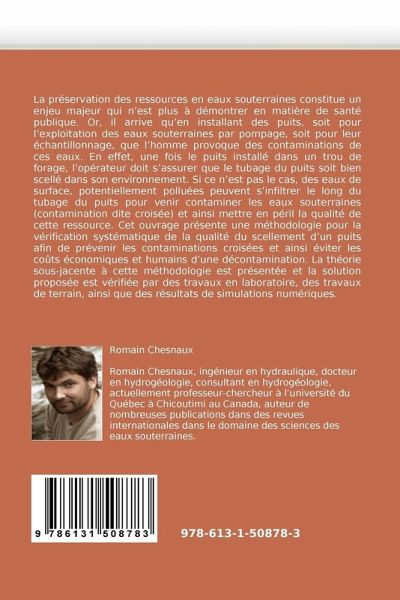 La préservation des ressources en eaux souterraines constitue un enjeu majeur qui n est plus à démontrer en matière de santé publique. Or, il arrive qu en installant des puits, soit pour l exploitation des eaux souterraines par pompage, soit pour leur échantillonnage, que l homme provoque des contaminations de ces eaux. En effet, une fois le puits installé dans un trou de forage, l opérateur doit s assurer que le tubage du puits soit bien scellé dans son environnement. Si ce n est pas le cas, des eaux de surface, potentiellement polluées peuvent s infiltrer le long du tubage du puits pour venir contaminer les eaux souterraines (contamination dite croisée) et ainsi mettre en péril la qualité de cette ressource. Cet ouvrage présente une méthodologie pour la vérification systématique de la qualité du scellement d un puits afin de prévenir les contaminations croisées et ainsi éviter les coûts économiques et humains d une décontamination. La théorie sous-jacente à cette méthodologie est présentée et la solution proposée est vérifiée par des travaux en laboratoire, des travaux de terrain, ainsi que des résultats de simulations numériques.