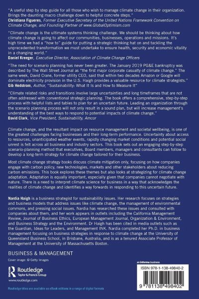 Most climate change strategy books discuss climate mitigation only, focusing on how companies engage with carbon policy, new technologies, markets and other stakeholders about reducing carbon emissions. This book explores these themes but also looks at strategizing for climate change adaptation. Adaptation is equally important, especially given that companies cannot negotiate with nature. There is a need to interpret climate science for business in a way that acknowledges the realities of climate change and identifies a way forwards in responding to this uncertain future.