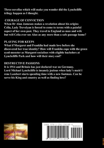 WARNING: NOT SUITABLE FOR THOSE BELOW 18 OWING TO ADULT CONTENT Three novellas which will turn everything you thought you knew about the Lynchcliffe Cuckoo trilogy on its head. COURAGE OF CONVICTION Celia Trevelyan is forced to confront her past when her friend, Dr Alan Jameson, makes a revelation about his own origins. Can Celia ever see him as more than a means to obtain passage home to England? PLAYING FOR KEEPS Lewis Franklin is forced to face the green eyed monster when Margaret, whom he has already claimed as his, spends a weekend with eligible bachelors at Lynchcliffe Park. DESTRUCTIVE PASSIONS Lord Michael Lynchcliffe is jealous when a new footman pays attention to Irene, whom he has loved from afar for ages. But his jealousy leads to near tragedy. Can he open his heart to her or is it already too late?