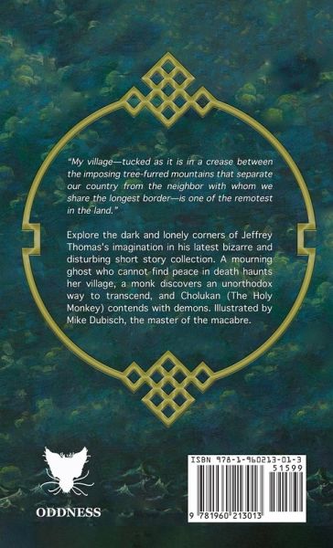 "My village-tucked as it is in a crease between the imposing tree-furred mountains that separate our country from the neighbor with whom we share the longest border-is one of the remotest in the land." Explore the dark and lonely corners of Jeffrey Thomas's imagination in his latest bizarre and disturbing short story collection. A mourning ghost who cannot find peace in death haunts her village, a monk discovers an unorthodox way to transcend, and Cholukan (The Holy Monkey) contends with demons. Illustrated by Mike Dubisch, the master of the macabre.