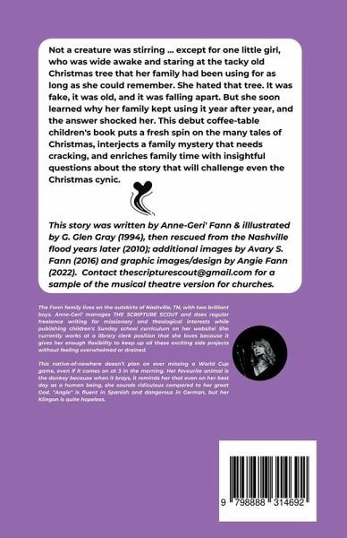 Not a creature was stirring ... except for one little girl, who was wide awake and staring at the tacky old Christmas tree that her family had been using for as long as she could remember. She hated that tree. It was fake, it was old, and it was falling apart. But she soon learned why her family kept using it year after year, and the answer shocked her. This debut coffee-table children's book puts a fresh spin on the many tales of Christmas, interjects a family mystery that needs cracking, and enriches family time with insightful questions about the story that will challenge even the Christmas cynic