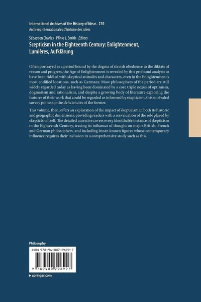The Age of Enlightenment has often been portrayed as a dogmatic period on account of the veritable worship of reason and progress that characterized Eighteenth Century thinkers. Even today the philosophes are considered to have been completely dominated in their thinking by an optimism that leads to dogmatism and ultimately rationalism. However, on closer inspection, such a conception seems untenable, not only after careful study of the impact of scepticism on numerous intellectual domains in the period, but also as a result of a better understanding of the character of the Enlightenment. As Giorgio Tonelli has rightly observed: "the Enlightenment was indeed the Age of Reason but one of the main tasks assigned to reason in that age was to set its own boundaries." Thus, given the growing number of works devoted to the scepticism of Enlightenment thinkers, historians of philosophy have become increasingly aware of the role played by scepticism in the Eighteenth Century, even in those places once thought to be most given to dogmatism, especially Germany. Nevertheless, the deficiencies of current studies of Enlightenment scepticism are undeniable. In taking up this question in particular, the present volume, which is entirely devoted to the scepticism of the Enlightenment in both its historical and geographical dimensions, seeks to provide readers with a revaluation of the alleged decline of scepticism. At the same time it attempts to resituate the Pyrrhonian heritage within its larger context and to recapture the fundamental issues at stake. The aim is to construct an alternative conception of Enlightenment philosophy, by means of philosophical modernity itself, whose initial stages can be found herein.