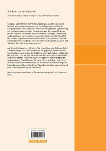 Fassaden übernehmen den Witterungsschutz, gewährleisten eine behagliche Innenraumsituation und beeinflussen wesentlich die Energieeffizienz eines Gebäudes. Durch die energetische Optimierung mit hochwärmedämmenden Fassaden steigen die Herausforderungen an sinnvolle technische und konstruktive Lösungen. Die Planung und Ausführung von Fassaden erfordert deshalb besondere Sorgfalt bei Planern, Ingenieuren und ausführenden Unternehmen. Trotzdem kommt es immer wieder zu erheblichen bautechnischen Mängeln und Schäden, die hohe Kosten verursachen.