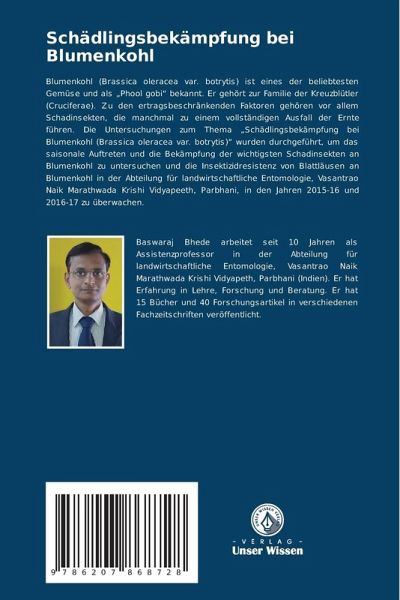 Blumenkohl (Brassica oleracea var. botrytis) ist eines der beliebtesten Gemüse und als "Phool gobi" bekannt. Er gehört zur Familie der Kreuzblütler (Cruciferae). Zu den ertragsbeschränkenden Faktoren gehören vor allem Schadinsekten, die manchmal zu einem vollständigen Ausfall der Ernte führen. Die Untersuchungen zum Thema "Schädlingsbekämpfung bei Blumenkohl (Brassica oleracea var. botrytis)" wurden durchgeführt, um das saisonale Auftreten und die Bekämpfung der wichtigsten Schadinsekten an Blumenkohl zu untersuchen und die Insektizidresistenz von Blattläusen an Blumenkohl in der Abteilung für landwirtschaftliche Entomologie, Vasantrao Naik Marathwada Krishi Vidyapeeth, Parbhani, in den Jahren 2015-16 und 2016-17 zu überwachen.