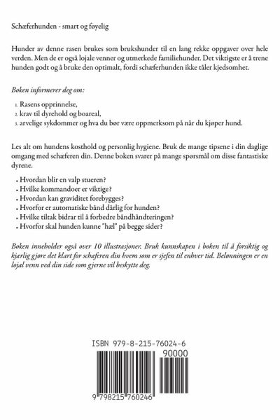 Schæferhunden - smart og føyelig Hunder av denne rasen brukes som brukshunder til en lang rekke oppgaver over hele verden. Men de er også lojale venner og utmerkede familiehunder. Det viktigste er å trene hunden godt og å bruke den optimalt, fordi schæferhunden ikke tåler kjedsomhet. Boken informerer deg om:Rasens opprinnelse, krav til dyrehold og boareal, arvelige sykdommer og hva du bør være oppmerksom på når du kjøper hund. Les alt om hundens kosthold og personlig hygiene. Bruk de mange tipsene i din daglige omgang med schæferen din. Denne boken svarer på mange spørsmål om disse fantastiske dyrene.Hvordan blir en valp stueren? Hvilke kommandoer er viktige? Hvordan kan graviditet forebygges? Hvorfor er automatiske bånd dårlig for hunden? Hvilke tiltak bidrar til å forbedre båndhåndteringen? Hvorfor skal hunden kunne "hæl" på begge sider? Boken inneholder også over 10 illustrasjoner. Bruk kunnskapen i boken til å forsiktig og kjærlig gjøre det klart for schæferen din hvem som er sjefen til enhver tid. Belønningen er en lojal venn ved din side som gjerne vil beskytte deg.
