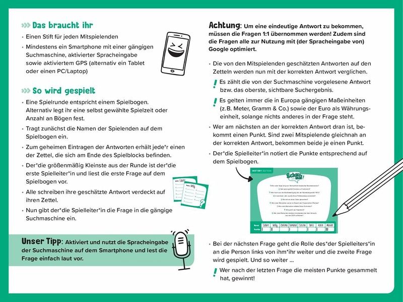 - Spieleblock mit 96 Seiten und über 300 Schätzfragen für superlangen Spielespaß