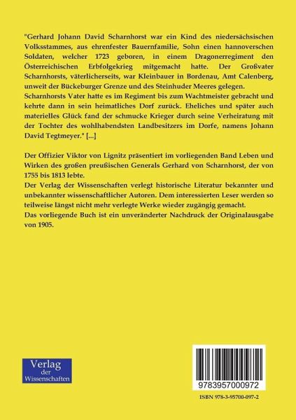 Der Offizier Viktor von Lignitz präsentiert im vorliegenden Band Leben und Wirken des großen preußischen Generals Gerhard von Scharnhorst, der von 1755 bis 1813 lebte.