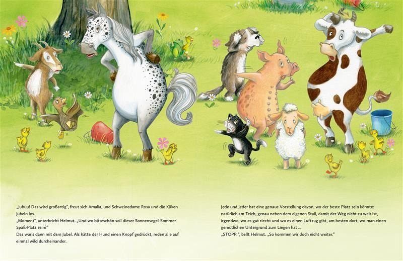 Es ist Sommer in Wommelbach und alle Tiere auf dem Bauernhof ächzen unter der Hitze. Wer kann, findet Abkühlung im Schatten der alten Eiche. Aber als Schweinedame Rosa, Kater Kahro und das Pferd Herr Wiesengrund auch noch dazukommen, wird es schnell zu eng. Für Ente Regente und ihre Küken ist dann erst recht kein Schattenplatz mehr da. Streit bricht aus: Wem gehört der Schatten? Wer darf in den Teich? Und wer bestimmt darüber? Gemeinschaftlich entwickeln die Tiere einen Hitze-Überlebens-Spaß-Plan, um der Wärme zu trotzen, und lernen dabei ganz nebenbei, was es heißt, Konflikte gleichberechtigt und demokratisch zu lösen. Dieses hochaktuelle Bilderbuch für Kinder ab 5 Jahren verbindet die Themen Klimawandel und Demokratie auf humorvolle und leichtfüßige Weise miteinander. Welche politischen Ordnungen gibt es eigentlich? Herr Wiesengrund erklärt es uns am Ende. CalmeMara-Bücher tun Gutes: Mit dem Kauf dieses Buches unterstützt du die Tiere des Begegnungs- und Lebenshofs Dorf Sentana und die sozialen Projekte vor Ort. CalmeMara-Bücher schützen die Umwelt: Dieses Buch wurde vegan, regional, klimakompensiert und nachhaltig produziert.