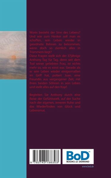 Worin besteht der Sinn des Lebens? Und wie zum Henker soll man es schaffen, sein Leben wieder in geordnete Bahnen zu bekommen, wenn doch so ziemlich alles in Trümmern liegt? Diese Fragen stellt sich der 37jährige Anthony Tag für Tag, denn seit dem Tod seiner geliebten Frau, ist nichts mehr so, wie es einst war. Gerade als er sein Leben wieder einigermaßen im Griff hat, poltert Joan, eine Freundin aus vergangener Zeit, mit ihren beiden Söhnen in sein Leben und stellt alles auf den Kopf.Begleiten Sie Anthony durch eine Reise der Gefühlswelt, auf der Suche nach der eigenen, inneren Ruhe und das Wiederfinden von Glück und Lebensmut.