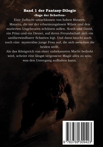 Band 1 der Fantasy-Dilogie »Saga der Schatten« Eine Zuflucht umschlossen von hohen Mauern. Mauern, die vor der erbarmungslosen Wüste und den mutierten Ungeheuern schützen sollen. Scath und David, ein Prinz und ein Diener, auf deren Freundschaft sich ein unüberwindbarer Schatten legt. Und dann taucht auch noch eine mysteriöse junge Frau auf, die sich zwischen die beiden stellt. Als das Königreich von einer unbekannten Macht bedroht wird, scheint eine längst vergessene Magie alles zu sein, was den Untergang aufhalten kann.
