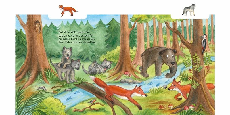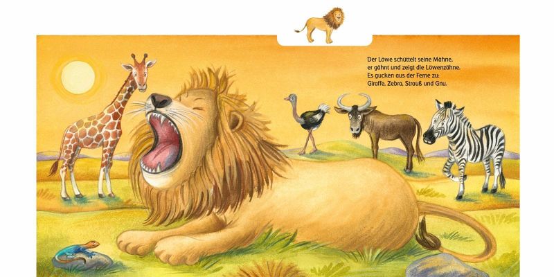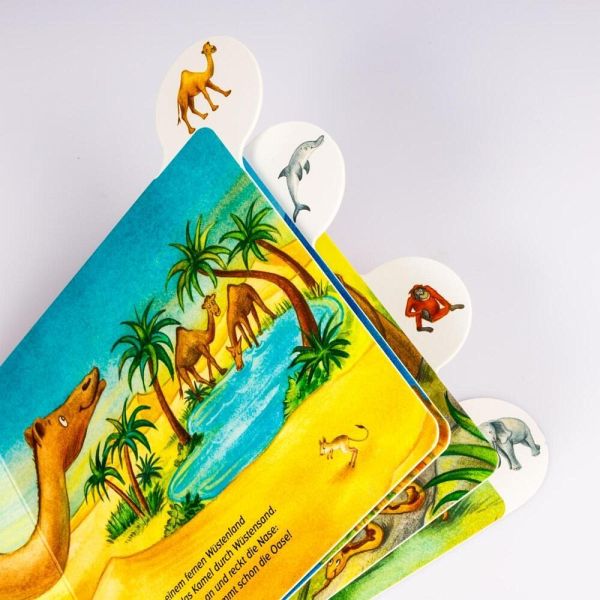 Insgesamt 18 beliebte Tiere werden vorgestellt. Die stabilen Register und eingängigen Reime laden zum Blättern und Mitsprechen ein.