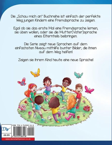 Dieses neue zweisprachige Bilderbuch ist die perfekte Geschichte für junge Kinder um die Grundbausteine der Englischen Sprache zu lernen. Bunt, lustig und lehrreich! Mo hat einen selbstbewussten Charakter und einen neuen Wissensdurst. Er möchte Englisch lernen um mehr Freunde zu gewinnen! Da er klein ist, beginnt er am Anfang und lernt die Basis wie Begrüßungen, bis 10 zu zählen und wie man seinen Namen sagt! Während wir Mo's Charakter und den anderen Kindern durch die Geschichte folgen, entdecken wir mehr der Grundbausteine der Englischen Sprache, die Themen beinhalten wie: U¿ber das Alter sprechen Mögen und nicht mögen Spiele und Freizeit Die Regenbogenfarben Verschiedene Haustiere Schlafenszeit Auf jeder Seite ist der Text auf Deutsch und Englisch gedruckt, so, dass Eltern, oder wer auch immer die Geschichte liest, dem Kind auf beiden Sprachen vorlesen kann. Erwachsene (oder die Leser) werden mit der perfekten, lustigen und bunten Platform ausgestattet, um es dem Kind zu ermöglichen die Englische Sprache zu wiederholen und zu üben die Wörter zu lernen, sowie die Grundausprache mit der Hilfe von verspielten Bildern zu lernen. Ob zweisprachiges Elternteil oder einfach begierig ihrem Kind eine neue Sprache beizubringen, dieses Buch ist das perfekte Sprungbrett um den Englischunterricht zu beginnen! Haftausschluss: Da dieses Produkt als Kinderbilderbuch konzipiert ist, beinhaltet es große, bunte Bilder und ist daher besser als Taschenbuch oder E-Book geeignet. Es ist im Kindleformat erhältlich, aber es sei Ihnen bitte bewusst, dass Bücher dieser Serie auf einigen Endgeräten nicht in Farbe zu sehen sind und dass die Textgröße zu klein für einige Leser sein könnte.