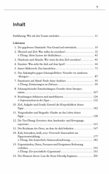 Dieses Buch kann alles, was ein gutes Schauspiel-Buch können muss. Es führt in den handwerklichen Teil des Schauspiels ein und behandelt ihn ausführlich. Dabei verliert es niemals die Tatsache aus den Augen, dass alle großen Schauspieler diese Dinge Gefühl, Intimität, Chaos, Körperverletzungen, Revolution in sich selbst und im Publikum zu erschaffen lernen. Helen Hunt, Schauspielerin
