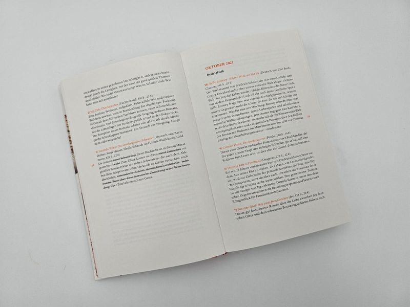 Gleich zu Beginn dieser Bibel findet man «Die zehn Gebote des Lesens». Man solle skeptisch sein als Leser, mehr ausländische Bücher lesen als deutsche, mehr von Autoren des anderen Geschlechts und mehr aus vergangenen Zeiten. Denken Sie sich in die Epochen hinein, lassen Sie sich nicht leiten durch den tollen Umschlag, durch Genres oder Verlage, bleiben Sie bei der Wahrheit, ob Ihnen ein Buch gefallen hat oder nicht. Urteilen Sie öffentlich nur über Bücher, die Sie komplett gelesen haben, urteilen Sie über Bücher und nicht über die Menschen, und seien Sie sich dessen bewusst, wenn Sie eine Übersetzung lesen. Im Vorwort wie auch in den einundzwanzig Einführungen zu den einzelnen Bestseller-Jahreslisten äußert sich Denis Scheck ergänzend auch sehr anschaulich und lehrreich zu verschiedenen Themen rund ums Buch. Da finden sich beispielsweise Beiträge wie «Leben Lesende länger», «Wie verändern Bücher unser Leben», «Warum sind so viele Bücher Krimis», «Stiften Bücher Werte», «Sind Bücher Spiegel oder Fenster», «Kann man aus Büchern lieben lernen», «Kann man Gott in der Literatur finden», «Kann man mit Büchern reich werden», «Wie verliebe ich mich in ein Buch».