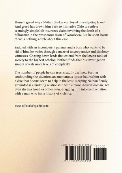 Probing the horrific death of a wealthy banker, insurance fraud investigator Nathan Parker discovers a dark conspiracy hidden beneath the picturesque veneer of a Cincinnati suburb. a Nathan Parker novel www.nathanhaleparker.com