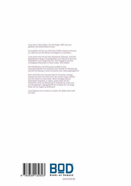 Lana sitzt in ihrer Küche. Sie hat Angst, fühlt sich wie gelähmt und denkt fiebernd nach. Verzweifelt und fast am Ende ihrer Kräfte zündet sie Kerzen an, stellt sie auf den Boden und beginnt zu schreiben.Lana nimmt uns mit auf eine spannende Zeitreise. Auf dem gedanklichen Weg in Vergangenheit und Zukunft kommt sie schließlich in der Gegenwart an. Dort begegnet sie dem wichtigsten Menschen in ihrem Leben. Sich selbst!Mit Rückblicken und Zeitversatz erzählt sie ihre Lebensgeschichte und analysiert den Strudel von Bedrohung, Gewalt und Betrug, in dem sie bereits seit Jahren gefangen ist.Was sich hinter der Fassade ihres Ex-Freundes verbirgt, kommt erst nach und nach ans Licht. Immer enger schnürt sich der Strick um ihren Hals. Seine Strategie jedochletztendlich begriffen zu haben, geht einher mit der Erkenntnis, dass die Beziehung zu Dominik nur eines war - ein skrupelloses Lügengeflecht der brutalen Art. Zu lange hatte sie die Augen verschlossen.Lana beginnt um ihr Leben zu rennen. Ihr bleibt nicht mehr viel Zeit...