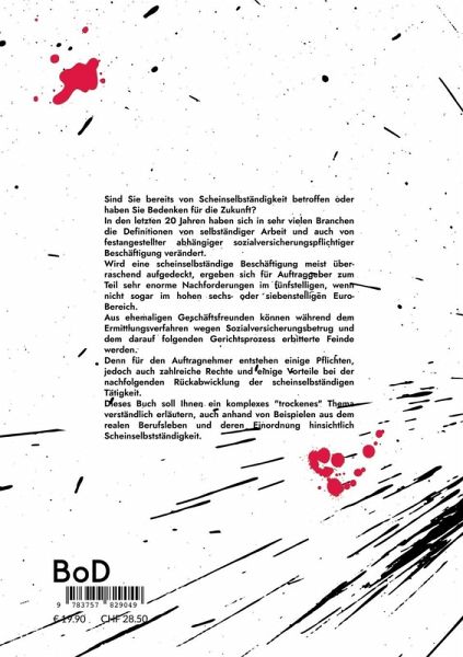 Sind Sie bereits von Scheinselbständigkeit betroffen oder haben Sie Bedenken für die Zukunft?In den letzten 20 Jahren haben sich in sehr vielen Branchen die Definitionen von selbständiger Arbeit und auch von abhängiger sozialversicherungspflichtiger Beschäftigung verändert.Wird eine scheinselbständige Beschäftigung überraschend aufgedeckt, ergeben sich für Auftraggeber und Auftragnehmer meistens hohe Nachforderungen im fünfstelligen, wenn nicht sogar im sechs- oder siebenstelligen Euro-Bereich.Aus ehemaligen Geschäftsfreunden können während dem Ermittlungsverfahren und dem nachfolgenden Gerichtsprozess erbitterte Feinde werden.Für den Auftragnehmer entstehen einige Pflichten, jedoch auch zahlreiche Rechte bei der nachfolgenden Rückabwicklung der scheinselbständigen Tätigkeit.Dieses Buch soll Ihnen ein komplexes "trockenes" Thema verständlich erläutern, auch anhand von Beispielen aus dem realen Berufsleben und deren Einordnung hinsichtlich Scheinselbstständigkeit.