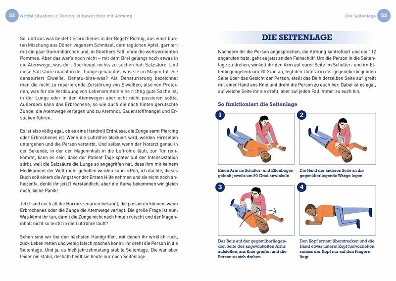 Lachen - lernen - Leben rettenWie war das noch gleich mit der stabilen Seitenlage? Und wie lauten die fünf W-Fragen, die bei einem Notruf angeblich wichtig sein sollen? Ein Notfall ist immer eine Extremsituation - und wer ist darauf schon vorbereitet? In Zukunft: du! Denn egal wie unwissend und unsicher du ich fühlst: Es ist wirklich ganz einfach, das Richtige zu tun, weil du eigentlich gar nichts falsch machen kannst. Deshalb sieht es Notfallmediziner Dr. Lüder Warnken als seine Aufgabe, mehr Menschen zum Handeln zu ermutigen und zu kompetenten Ersthelfern zu machen. Anhand amüsanter und manchmal auch skurriler Anekdoten aus seinem Leben als Notarzt stellt er anschaulich dar, wie du in Not- und Unfallsituationen richtig reagierst und betroffenen Personen helfen kannst. Unterstützt werden seine einfachen und präzisen Handlungsanweisungen von Illustrationen, die zeigen, wie du richtig vorgehst, wenn deine Hilfe benötigt wird. Alles andere als trocken vermittelt der Arzt und Comedian so lebenswichtiges Wissen, von dem wirklich jeder profitiert.