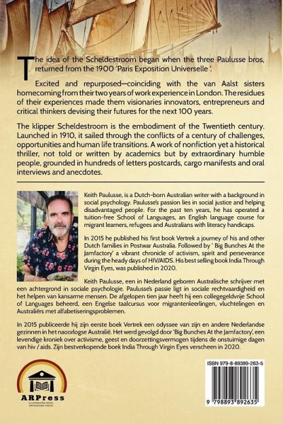 The idea of the Scheldestroom began when the three Paulusse bros, returned from the 1900 'Paris Exposition Universelle '. Excited and repurposed-coinciding with the van Aalst sisters homecoming from their two years of work experience in London. The residues of their experiences made them visionaries innovators, entrepreneurs and critical thinkers devising their futures for the next 100 years. The klipper Scheldestroom is the embodiment of the Twentieth century. Launched in 1910, it sailed through the conflicts of a century of challenges, opportunities and human life transitions. A work of nonfiction yet a historical thriller, not told or written by academics but by extraordinary humble people, grounded in hundreds of letters postcards, cargo manifests and oral interviews and anecdotes.