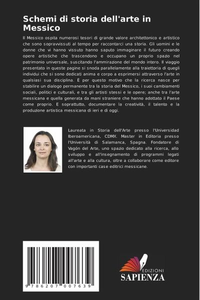 Il Messico ospita numerosi tesori di grande valore architettonico e artistico che sono sopravvissuti al tempo per raccontarci una storia. Gli uomini e le donne che vi hanno vissuto hanno saputo immaginare il futuro creando opere artistiche che trascendono e occupano un proprio spazio nel patrimonio universale, suscitando l'ammirazione del mondo intero. Il viaggio presentato in queste pagine si snoda parallelamente alla traiettoria di quegli individui che si sono dedicati anima e corpo a esprimersi attraverso l'arte in qualsiasi sua disciplina. È per questo motivo che la ricerca nasce per stabilire un dialogo permanente tra la storia del Messico, i suoi cambiamenti sociali, politici e culturali, e tra gli artisti stessi e le opere; anche tra l'arte messicana e quella generata da mani straniere che hanno adottato il Paese come proprio. E soprattutto, documentare la creatività, il talento e la produzione artistica messicana di ieri e di oggi.