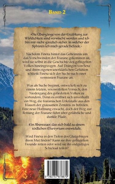 Band 2 der Fearane-Trilogie»Die Übergänge von der Erzählung zur Wirklichkeit sind verwischt worden und ich bin mir nicht gänzlich sicher, in welcher der Sphären ich mich gerade befinde.«Nachdem Finéra hinter das Geheimnis um das Verschwinden der Fearane gekommen ist, wird sie selbst in die Geschichte des geflügelten Volkes hineingezogen. Auf Drängen von Sera und ihren eigenen unerklärlichen Gefühlen schließt Finéra sich der Suche nach einer vermissten Fearane an.Was als Suche beginnt, entwickelt sich zu einem letzten, verzweifelten Versuch, den Niedergang des gefiederten Volkes zu verhindern. Denn es eröffnet sich unverhofft ein Weg, die fearanischen Urkristalle aus den Klauen der grausamen Zentâris zu befreien. Eine neue Hoffnung erwacht, doch der Weg zur Rettung der Fearane führt über gefährliche und dunkle Pfade.Ein Abenteuer, das sich bald zu einem tödlichen Martyrium entwickelt.Wird Finéra in den Tiefen des Glutgebirges ihren Mut finden? Kann sie ihre geflügelten Freunde retten oder wird sie ihr endgültiges Schicksal teilen?