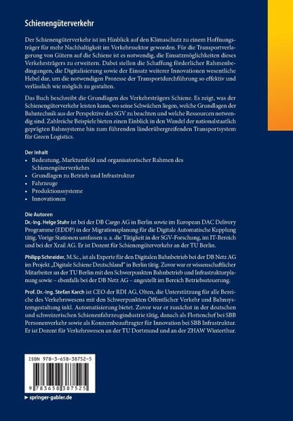 Das Buch beschreibt die Grundlagen des Verkehrsträgers Schiene. Es zeigt, was der Schienengüterverkehr leisten kann, wo seine Schwächen liegen, welche Grundlagen der Bahntechnik aus der Perspektive des SGV zu beachten und welche Ressourcen notwendig sind. Zahlreiche Beispiele bieten einen Einblick in den Wandel der nationalstaatlich geprägten Bahnsysteme hin zum führenden, länderübergreifenden Transportsystem für Green Logistics.