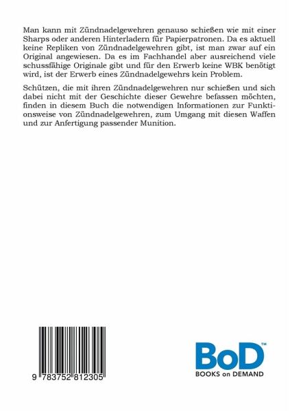 Man kann mit Zündnadelgewehren genauso schießen wie mit einer Sharps oder anderen Hinterladern für Papierpatronen. Da es aktuell keine Repliken von Zündnadelgewehren gibt, ist man dafür auf ein Original angewiesen. Da es im Fachhandel aber ausreichend viele schussfähige Originale gibt und für den Erwerb keine WBK benötigt wird, ist der Erwerb eines Zündnadelgewehrs kein Problem.Schützen, die mit ihren Zündnadelgewehren nur schießen und sich dabei nicht mit der Geschichte befassen möchten, finden in diesem Buch die notwendigen Informationen zur Funktionsweise von Zündnadelgewehren, zum Umgang mit diesen Waffen und zur Anfertigung passender Munition.