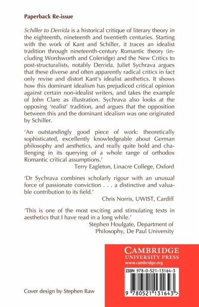 Schiller to Derrida is a historical critique of literary theory in the eighteenth, nineteenth and twentieth centuries. Starting with the work of Kant and Schiller, it traces an idealist tradition through nineteenth-century Romantic theory (including Wordsworth and Coleridge) and the New Critics to post-structuralists, notably Derrida. The book argues that these diverse and often apparently radical critics in fact only revise and distort Kant's idealist aesthetics. It shows how this dominant idealism has prejudiced critical opinion against certain non-idealist writers, and takes the example of John Clare as illustration.