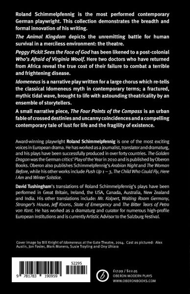 Roland Schimmelpfennig is the most performed contemporary German playwright. This collection demonstrates the breadth and formal innovation of his writing. The Animal Kingdom depicts the unremitting battle for human survival in a merciless environment: the theatre. Peggy Pickit Sees the Face of God has been likened to a post-colonial Who's Afraid of Virginia Woolf. Here two doctors who have returned from Africa reveal the true cost of their failure to combat a terrible and frightening disease. Idomeneus is a narrative play written for a large chorus which re-tells the classical Idomeneus myth in contemporary terms; a fractured, mythic tidal wave, brought to life with astounding theatricality by an ensemble of storytellers. A small narrative piece, The Four Points of the Compass is an urban fable of crossed destinies and uncanny coincidences and a compelling contemporary tale of lust for life and the fragility of existence.