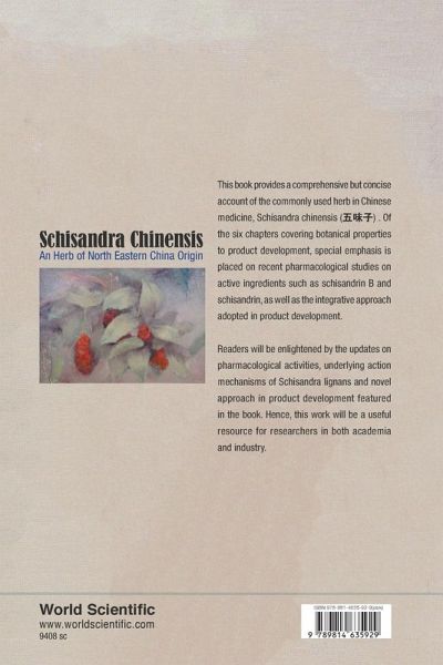 This book provides a comprehensive but concise account of the commonly used herb in Chinese medicine, Schisandra chinensis (¿¿¿). Of the six chapters covering botanical properties to product development, special emphasis is placed on recent pharmacological studies on active ingredients such as schisandrin B and schisandrin, as well as the integrative approach adopted in product development. Readers will be enlightened by the updates on pharmacological activities, underlying action mechanisms of Schisandra lignans and novel approach in product development featured in the book. Hence, this work will be a useful resource for researchers in both academia and industry.