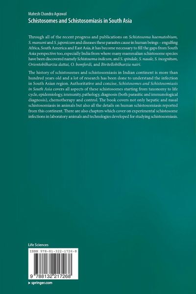 According to the author, the book addresses to all the scientists and not only to immunologists or biologists of European countries who are engaged in developing a vaccine, or a diagnostic kit or a new drug against the infection or on schistosome evolution. Even these scientists have to visit endemic countries for field trials or ask their counterparts to collect field data (which this book addresses ). Thus this book is not on molecular fundamentals but on the infection itself; how schistosome species are responding to the drug ; sensitivity and specificity of immunodiagnostic kits, antigen molecules; snail compatibility, production losses; schistosome evolution; schistosome outbreaks; complexities where more than two schistosome species are existing; problem of human schistosomiasis in South Asia etc In fact , all the topics of great interest to international scientists and scientists of endemic countries.