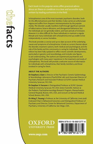 Schizophrenia: The Facts provides a concise and up-to-date account of the underlying causes and symptoms of schizophrenia, as well as current theories about the disorder. The book provides a welcome source of information and advice both for families of schizophrenics and those involved in caring for them.