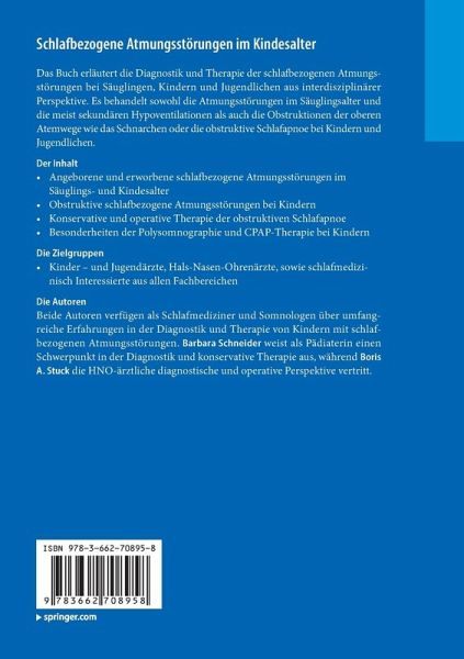 Beide Autoren verfügen als Schlafmediziner und Somnologen über umfangreiche Erfahrungen in der Diagnostik und Therapie von Kindern mit schlafbezogenen Atmungsstörungen. Barbara Schneider weist als Pädiaterin einen Schwerpunkt in der Diagnostik und konservative Therapie aus, während Boris A. Stuck die HNO-ärztliche diagnostische und operative Perspektive vertritt.