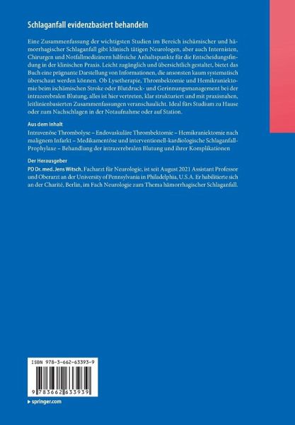 Eine Zusammenfassung der wichtigsten Studien im Bereich ischämischer und hämorrhagischer Schlaganfall gibt klinisch tätigen Neurologen, aber auch Internisten, Chirurgen und Notfallmedizinern hilfreiche Anhaltspunkte für die Entscheidungsfindung in der klinischen Praxis. Leicht zugänglich und übersichtlich gestaltet, bietet das Buch eine prägnante Darstellung von Informationen, die ansonsten kaum systematisch überschaut werden können. Ob Lysetherapie, Thrombektomie und Hemikraniektomie beim ischämischen Stroke oder Blutdruck- und Gerinnungsmanagement bei der intrazerebralen Blutung, alles ist hier vertreten, klar strukturiert und mit praxisnahen, leitlinienbasierten Zusammenfassungen veranschaulicht. Ideal fürs Studium zu Hause oder zum Nachschlagen in der Notaufnahme oder auf Station.
