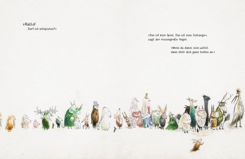Alle Tiere stehen in einer Reihe. So ein schönes Spiel, denkt Zwig. Er will unbedingt mitmachen. Doch die Tiere behaupten: Das ist kein Spiel. Es ist eine Schlange, sagen sie, und Zwig soll sich ganz hinten anstellen. Ganz hinten? Das ist ganz schön weit weg. Aber Zwig hat schon eine Idee, wie er diese lange Schlange so richtig aufwirbeln kann!