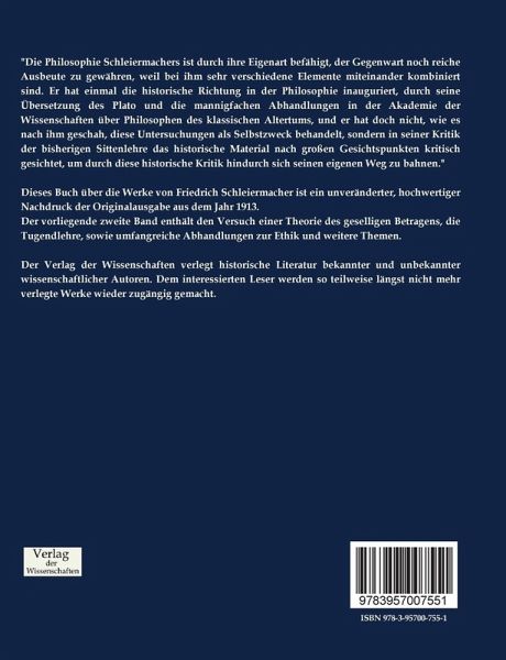Dieses Buch über die Werke von Friedrich Schleiermacher ist ein unveränderter, hochwertiger Nachdruck der Originalausgabe aus dem Jahr 1913.
