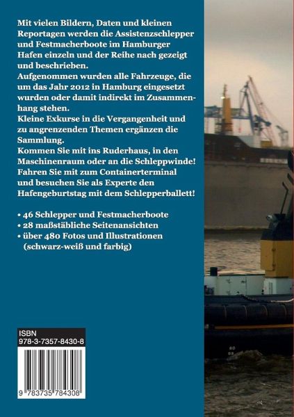 Mit vielen Bildern, Daten und kleinen Reportagen werden die Assistenzschlepper und Festmacherboote im Hamburger Hafen einzeln und der Reihe nach gezeigt und beschrieben. Aufgenommen wurden alle Schlepper aus diesem Arbeitsbereich, die um das Jahr 2012 in Hamburg eingesetzt wurden oder damit indirekt im Zusammenhang stehen. Kleine Exkurse in die Vergangenheit und zu angrenzenden Themen ergänzen die Sammlung. Kommen Sie mit ins Ruderhaus, in den Maschinenraum oder an die Schleppwinde! Fahren Sie mit zum Containerterminal und besuchen Sie als Experte den Hafengeburtstag mit dem Schlepperballett! - 46 Schlepper und Festmacherboote - 28 maßstäbliche Seitenansichten - über 480 Fotos und Illustrationen (schwarz-weiß und farbig)