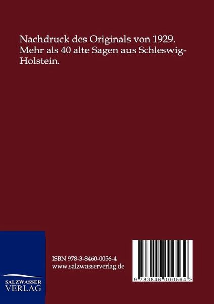 Nachdruck des Oriignals von 1929. Mehr als 40 alte Sagen aus Schleswig-Holstein.
