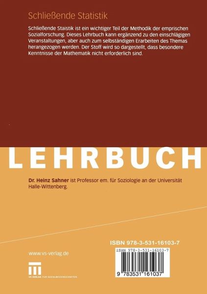 Schließende Statistik ist ein wichtiger Teil der Methodik der empirischen Sozialforschung. Dieses Lehrbuch kann ergänzend zu den einschlägigen Veranstaltungen, aber auch zum selbständigen Erarbeiten des Themas herangezogen werden. Der Stoff wird so dargestellt, dass besondere Kenntnisse der Mathematik nicht erforderlich sind.