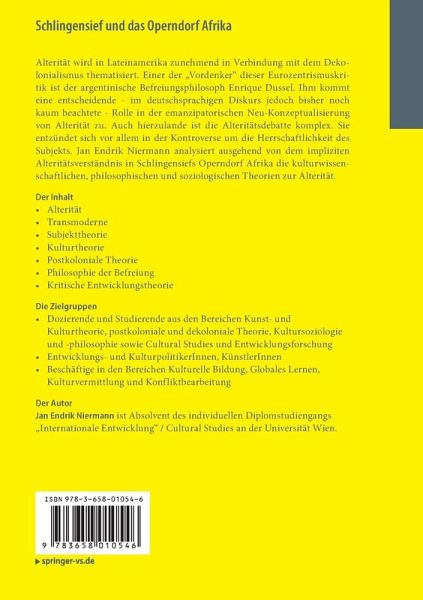 Alterität wird in Lateinamerika zusehends unter dem Schlagwort des Dekolonialismus aufgerollt. Einer der "Vordenker" dieser Eurozentrismuskritik ist der argentinische Befreiungsphilosoph Enrique Dussel. Ihm kommt eine entscheidende - im deutschsprachigen Diskurs jedoch kaum beachtete - Rolle in der Konzeptualisierung von Alterität im Hinblick auf deren emanzipatorische Neuformulierung zu. Auch hierzulande ist die Alteritätsdebatte komplex. Sie entzündet sich vor allem in der Kontroverse um die Herrschaftlichkeit des Subjekts. Das Buch analysiert neben den kulturwissenschaftlichen, philosophischen und soziologischen Theorien zur Alterität das implizite Alteritätsverständnis in Schlingensiefs Operndorf Afrika.