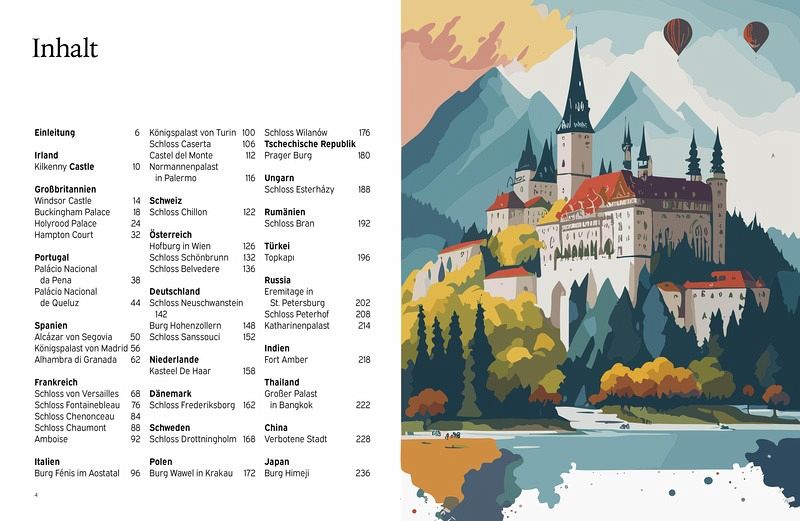 Der Band widmet sich den schönsten Schlössern und königlichen Residenzen der Welt. Tauchen Sie ein in die historischen Epochen, in denen die jeweiligen Paläste erbaut wurden. Anhand der Biografien dort residierender Königinnen und Könige, Adeligen und Damen werden jene Zeiten wieder zum Leben erweckt. Mächtige Fresken und Gemälde werden beleuchtet, von Königshäusern in Auftrag gegeben und von den besten Talenten der Welt erschaffen. Unverzichtbar sind auch die einzigartigen Dekorationen, Einrichtungsgegenstände und Stilrichtungen dieser Schlösser. Schließlich treten Sie hinaus und bestaunen die Vielfalt der Gärten und Blumenkompositionen unterschiedlicher Kulturen.