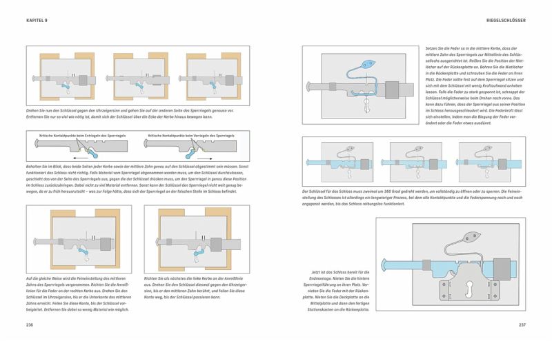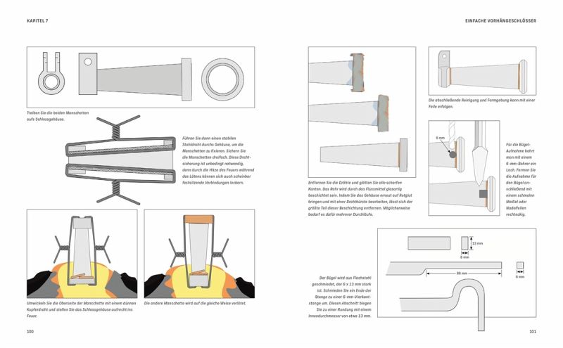 Das BuchGeschmiedete Schlösser - Kultur und faszinierendes HandwerkAls die Menschen begannen, sesshaft zu werden, entwickelten sie die ersten Schlösser. Mit Aufblühen des Schmiedehandwerks entwickelten sich auch die Türschlösser immer weiter und wurden zunehmend komplexer. Begleiten Sie uns auf dieser faszinierenden Reise und entdecken Sie das faszinierende Handwerk der Schlossmacher und -schmiede. In diesem Buch erfahren und erlernen Sie alles, was Sie zum Bau von Schlössern wissen müssen - von den grundlegenden Schmiedetechniken und den benötigten Werkzeugen bis hin zu detaillierten Bauanleitungen für verschiedene Schlosstypen.Die AutorenDenis Frechette richtete 1979 seine erste Schmiede ein. Im Jahr 2005 begann er mit der Produktion von Videos, um althergebrachte handwerkliche Techniken zu dokumentieren und zu bewahren. William "Bill" Morrison ist Kunstlehrer. Sein Interesse am Schmiedehandwerk wurde vor über 40 Jahren geweckt. Morrison entwickelte unter anderem Schmiedekurse und restaurierte Schlösser aus dem 17. und 18. Jahrhundert. Bill Morrison betreibt seine Schmiede "Spruce Forge" in Sault Ste. Marie, Michigan, USA.Dieses Buch wurde ausgezeichnet mit dem Benjamin Franklin Award.