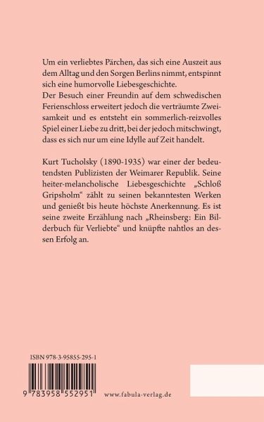 Um ein verliebtes Pärchen, das sich eine Auszeit aus dem Alltag und den Sorgen Berlins nimmt, entspinnt sich eine humorvolle Liebesgeschichte. Der Besuch einer Freundin auf dem schwedischen Ferienschloss erweitert jedoch die verträumte Zweisamkeit und es entsteht ein sommerlich-reizvolles Spiel einer Liebe zu dritt, bei der jedoch mitschwingt, dass es sich nur um eine Idylle auf Zeit handelt.Kurt Tucholsky (1890-1935) war einer der bedeutendsten Publizisten der Weimarer Republik. Seine heiter-melancholische Liebesgeschichte "Schloß Gripsholm" zählt zu seinen bekanntesten Werken und genießt bis heute höchste Anerkennung. Es ist seine zweite Erzählung nach "Rheinsberg: Ein Bilderbuch für Verliebte" und knüpfte nahtlos an dessen Erfolg an.